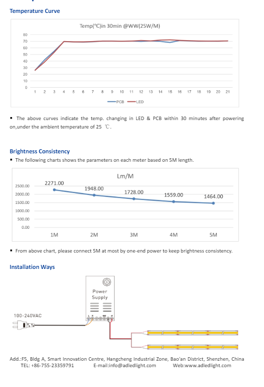 Compare with SMD strip light, COB light strips produce an evenly distributed light output, ensuring a uniform and consistent illumination without any light spots.